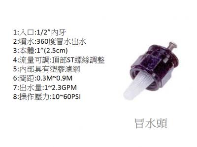 冒水頭 .1/2" 內牙. 適合灌木淹水型灌溉